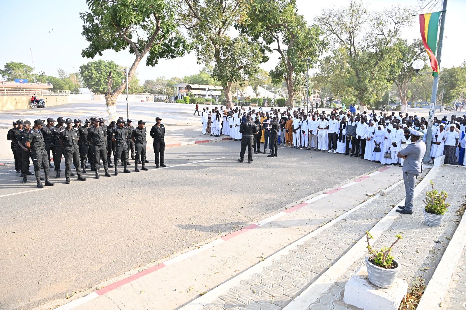 Ce vendredi 27 février 2026, les Assistants à la sécurité de proximité (Asp) de l’Unité départementale de Thiès, en collaboration avec le Centre Régional de Formation des Personnels de l’Education de Thiès (CRFPE), ont participé à la cérémonie de levée des couleurs à la place Mamadou DIA de la promenade des Thiessois. L’activité entre dans le cadre de la formation initiale des élèves-maîtres qui démarre par un amphi de rentrée qui marque officiellement l’entrée de l’élève-maître dans la communauté des futurs enseignants.